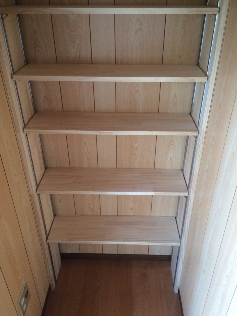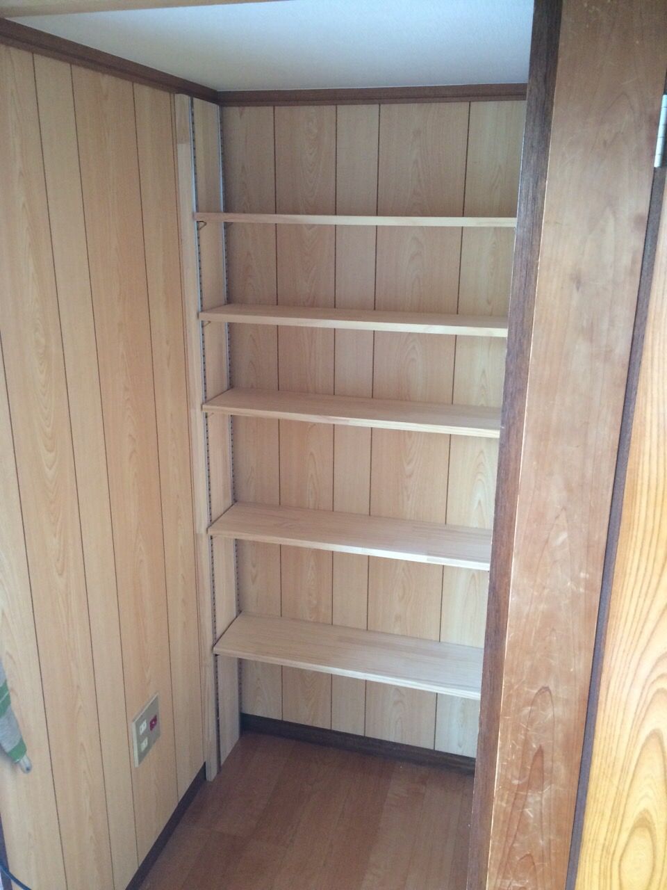 高さが自由に変更できるので使い勝手の良い棚が出来ました