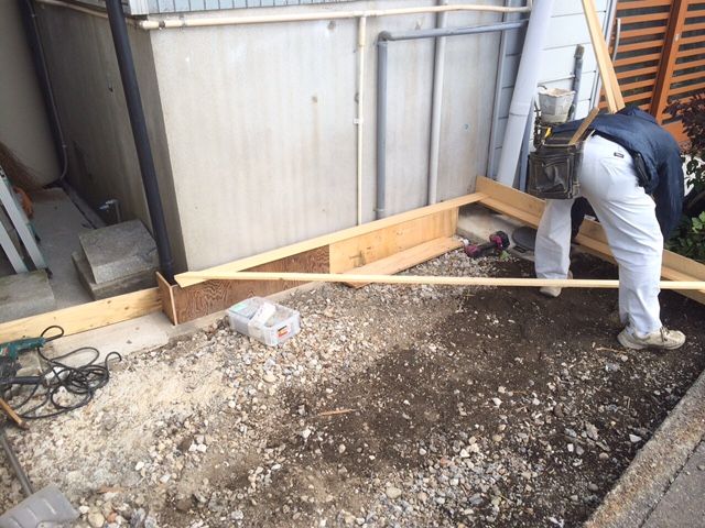 今朝から解体工事に着手して、土間コンクリートの型枠工事も行いました