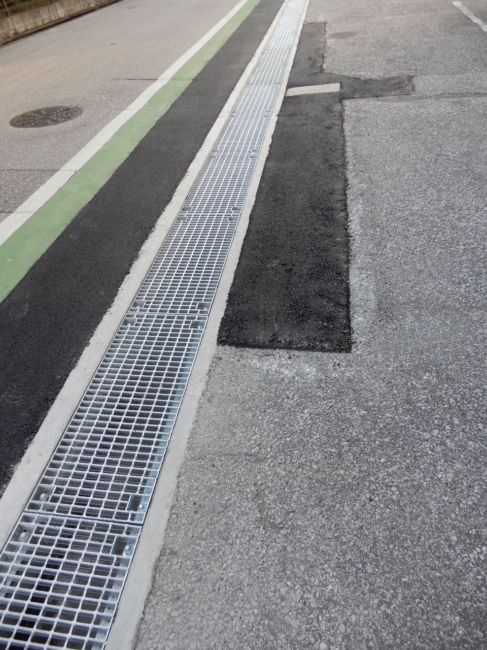 水路のグレーチング工事が終わったので仕上の舗装工事です