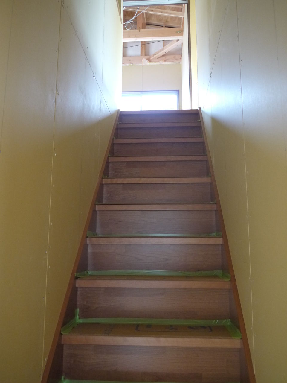 2階の階段降り口ですが、階段が仕上がるまで床を貼る事が出来ずにいました