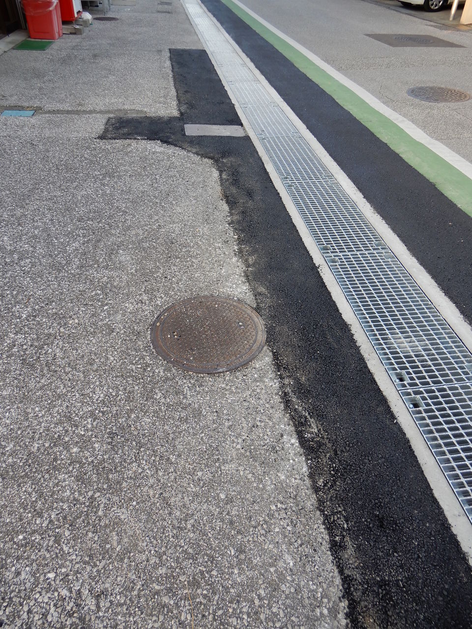 以前からアスファルトの沈下箇所があり水溜りが出来ていました