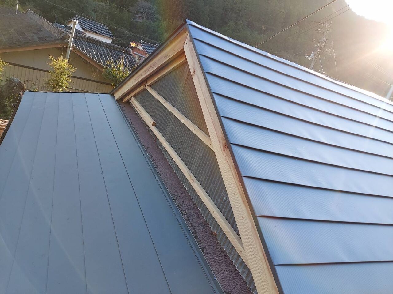 本日無事に屋根下地が終わって、明日板金屋さんが寸法取りに来てくれる