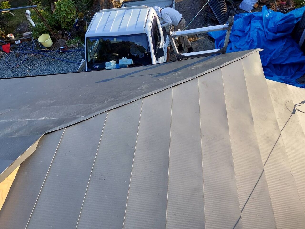 屋根に写っている人影は板金工事責任者です