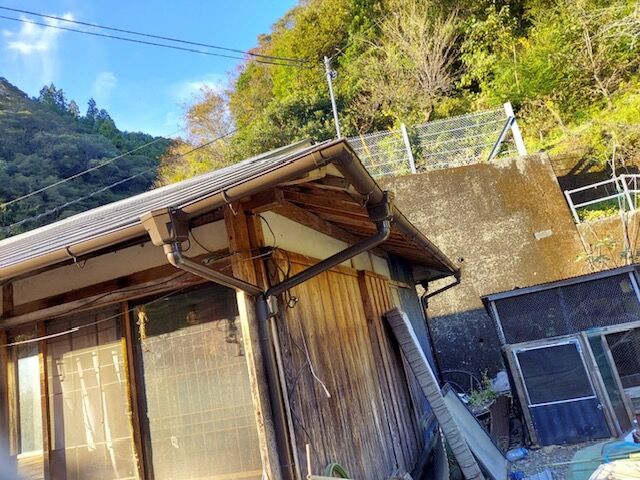 屋根工事が終わったので雨漏りの心配は無くなりましたが、樋が掛かっていないと