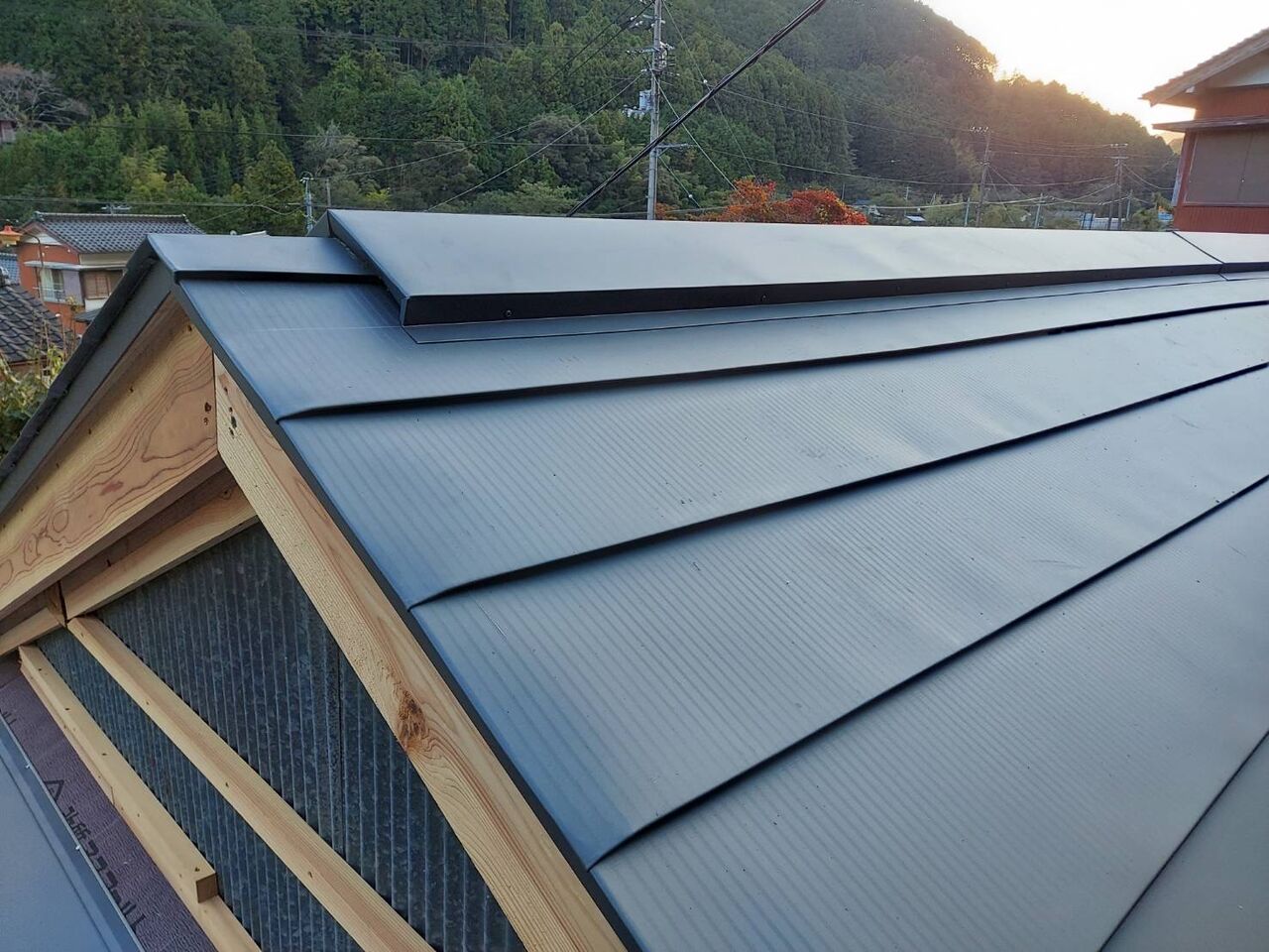 カラーGL鋼板0.35?成型横葺き屋根の完成です